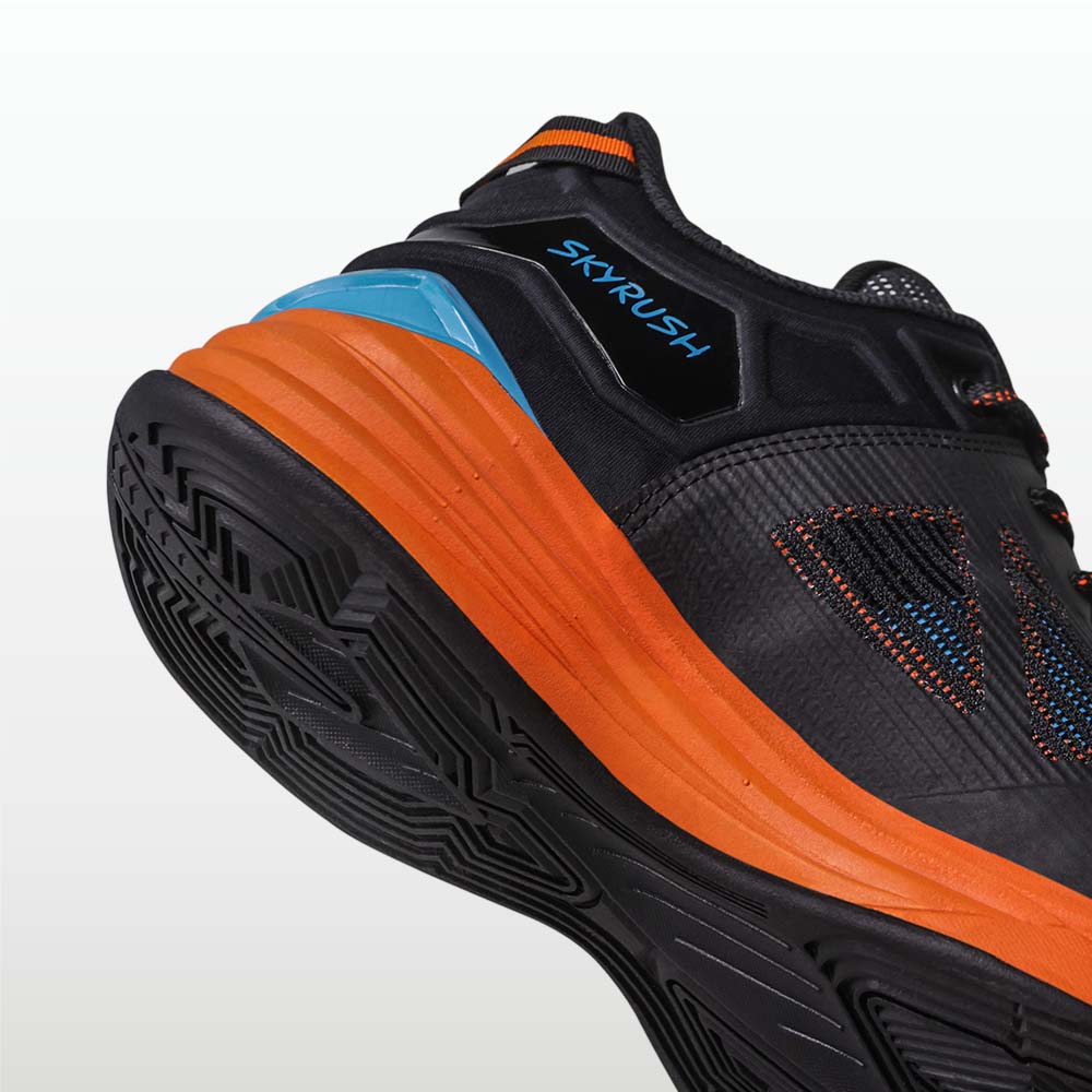 Built for players who want responsive footwork, breathable comfort and all-round court stability, the Skyrush Combo brings together everything you need for confident indoor play. The Sky Rush basketball shoes feature an air-ventilated TPU + textile upper that keeps your feet cool, a soft NR EVA inner insole for shock absorption and a removable Sportho Foot Comfort sockliner for plush cushioning during high-intensity movement. Paired with Court Cotton Socks, the durable Engraver Size 7 basketball, knee support for added joint stability and a double-action pump to keep your ball ready every session.